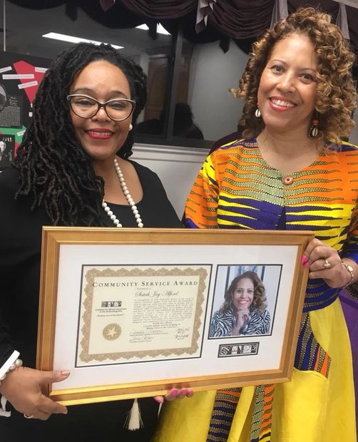 Coalition for African Americans in the Performing Arts (CAAPA) Executive Director, Terri Allen, presented the organization's prestigious Community Service Award to Sistah Joy in recognition for her extraordinary and continuing work in the community "in the areas of poetry, literature, spoken word and arts and humanities...as an author, advocate and activist, with dedicated service to Prince George's County Arts Community and the community at large... whose enthusiasm, diligence and commitment have not gone unnoticed."